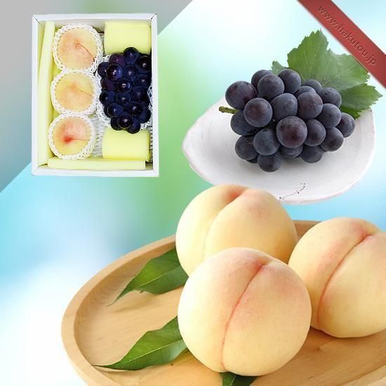 岡山白桃とぶどうの詰め合わせ。