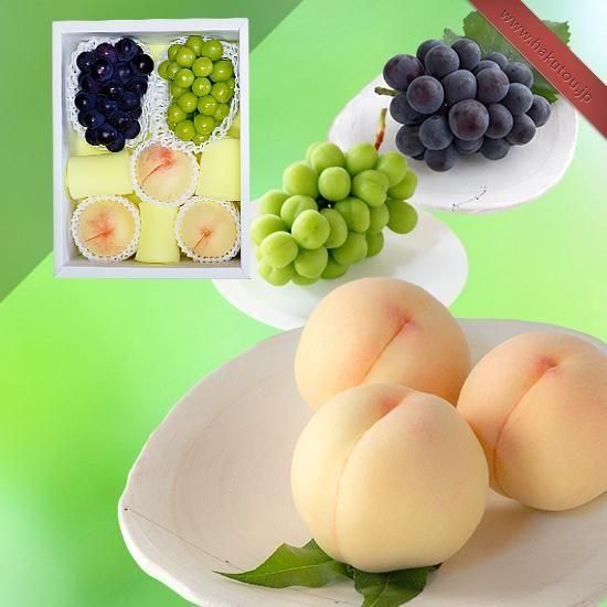 岡山白桃とぶどうの詰め合わせ。