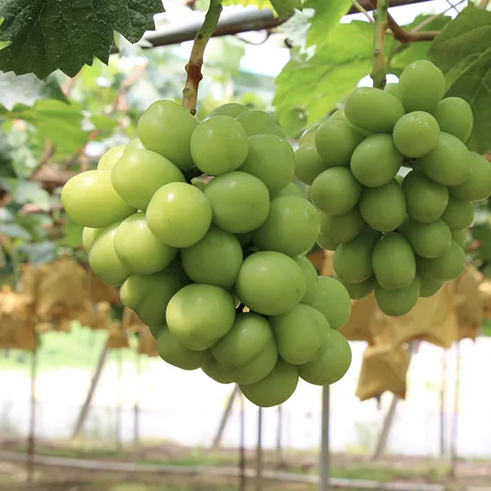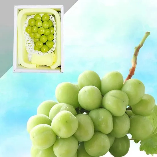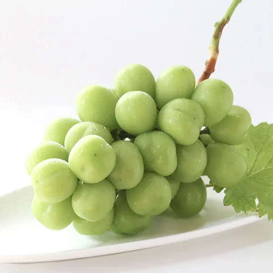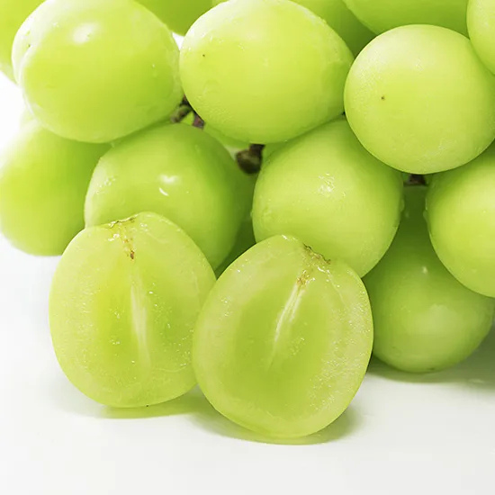 大粒・種なしのシャインマスカット。甘い果汁と、皮ごと食べる食感をお楽しみください。